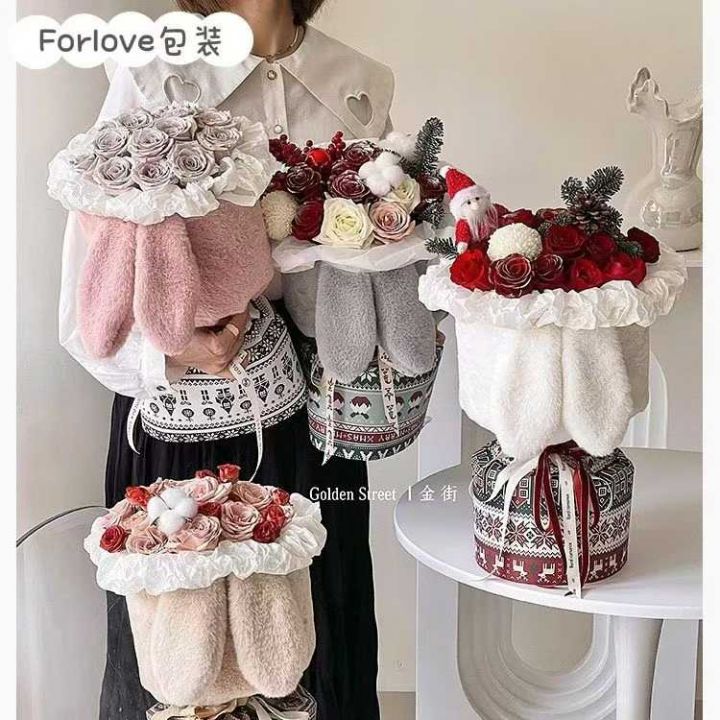 5000个爆款兔耳朵抱抱桶小香风,毛绒鲜花包材,多色,独立包装……...