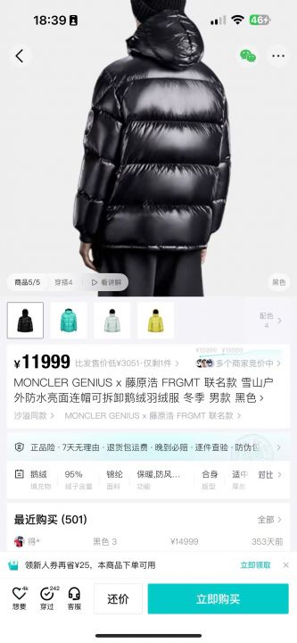 Alo棉服可以分货