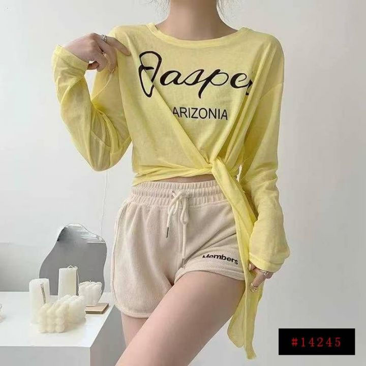 882件夏季热卖甜酷薄款开叉长袖正肩显瘦T恤女辣妹宽松百搭冰丝防晒罩衫上衣...