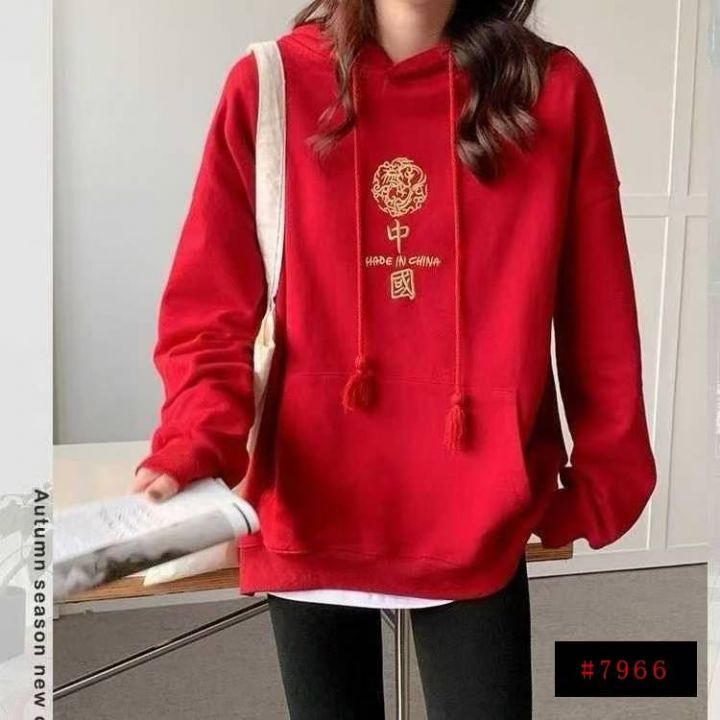 红色双层连帽卫衣宽松秋冬国潮外套中国风卫衣女学院风春秋款,数量220件,...