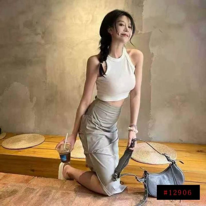褶皱半身裙女夏季中长裙修身显瘦速干开叉半裙欧美ins辣妹工装裙,193件,码...