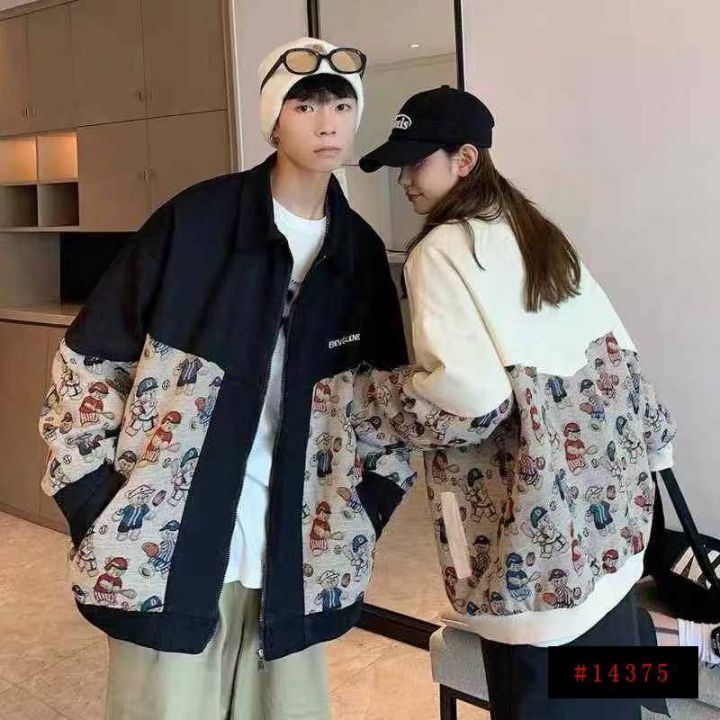 全清14.8元自留款90件左右高品质情侣春秋款小熊拼接宽松大版夹克,双层带内...