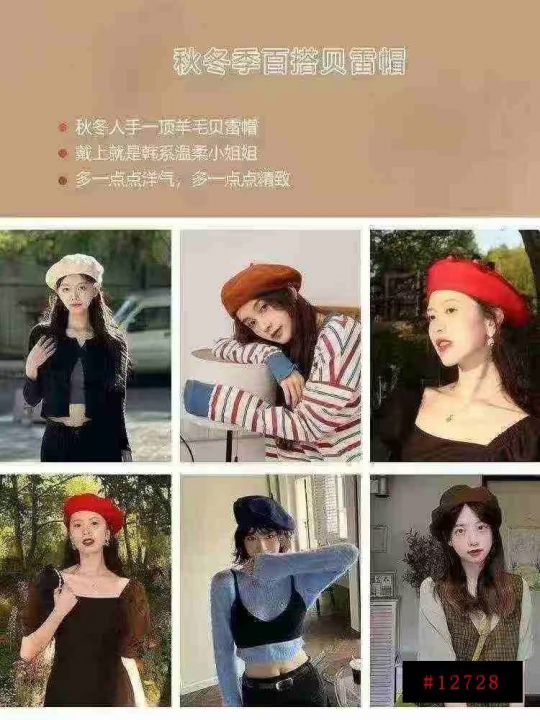 上新实体店下架时尚女装羊毛贝蕾帽 110个 单款7个色 含羊毛91.5%. 货...