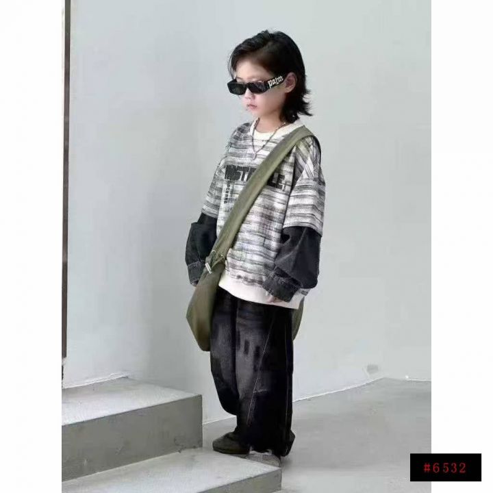 4.9清电商仓回收404件美式扎染假两件潮儿童卫衣,码数100-150码。面料柔软...