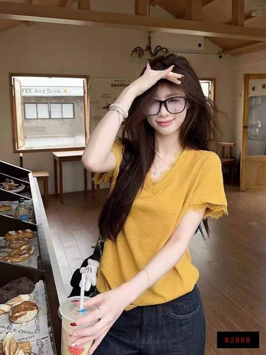 [月亮]:6.9清397件[月亮]:美式设计感蕾丝拼接休闲短袖[月亮]:135码 独立...