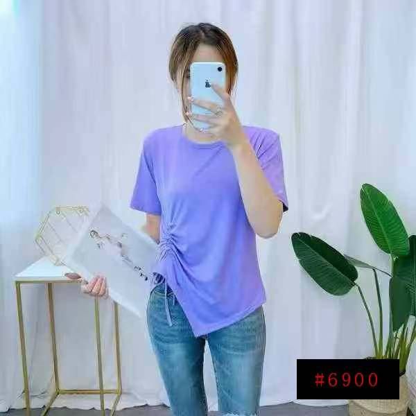 [月亮]:3.9清1200件/分货4.5[月亮]:不规则抽绳收腰设计休闲宽松T恤[月亮]...