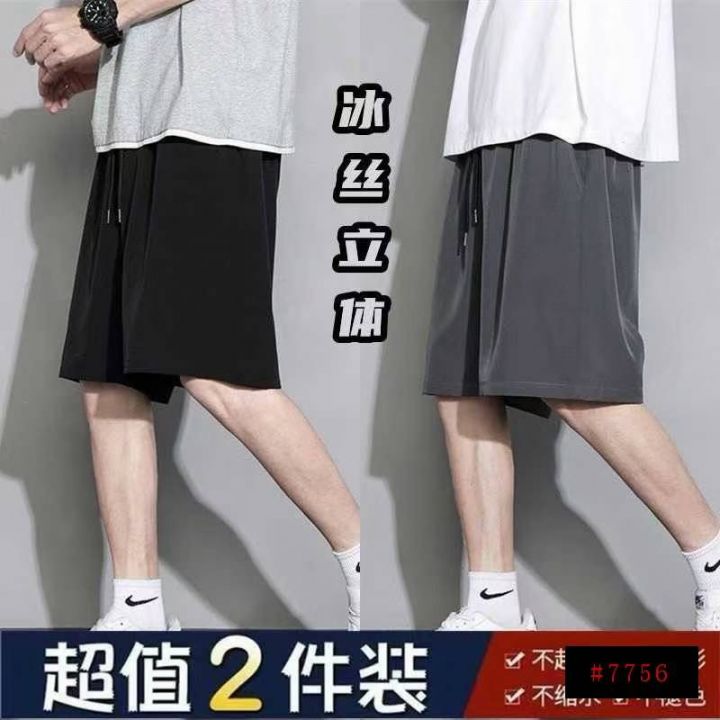 冰丝四面弹短裤男港风ins潮流宽松百搭休闲五分裤夏季男装外穿运动裤子,整...