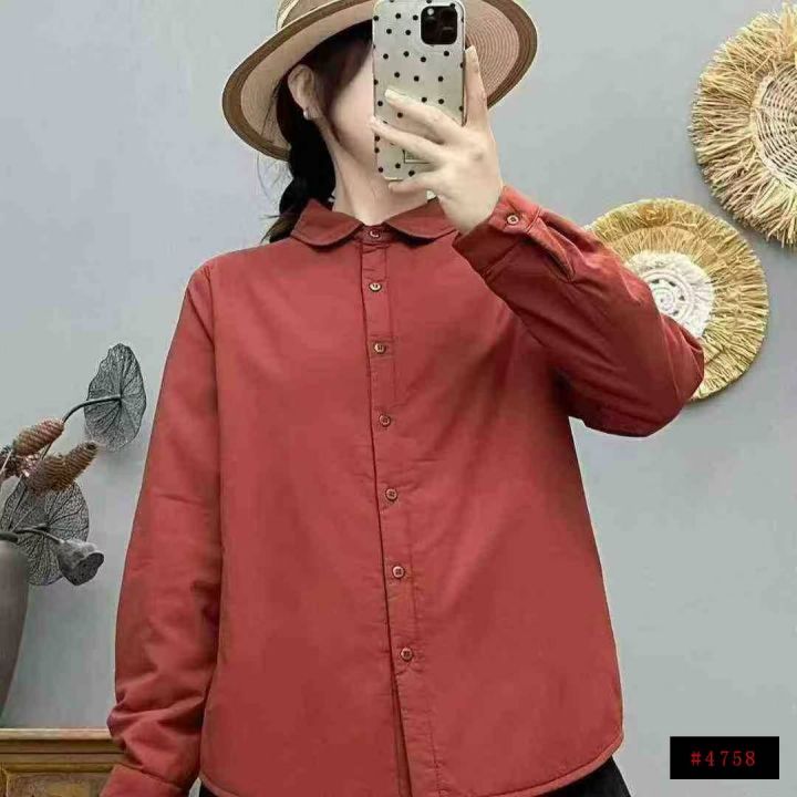 日系简约舒适加厚婴儿绒质感通勤减龄元宝领子母扣保暖长袖衬衫,面布纯棉质...