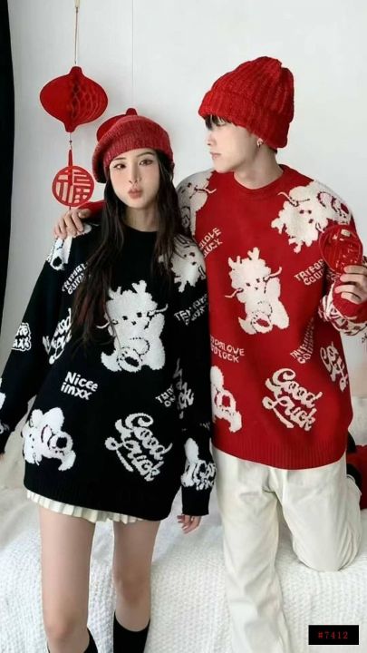 秋冬新款大板落肩宽松慵懒风卡通提花芝麻底2条毛包芯纱套头毛衣,独立包装...