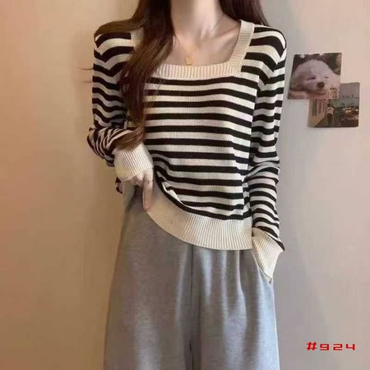 秋冬新款宽松撞色条纹针织方领套头毛衣,独立包装,均码面料柔软舒适弹力大...