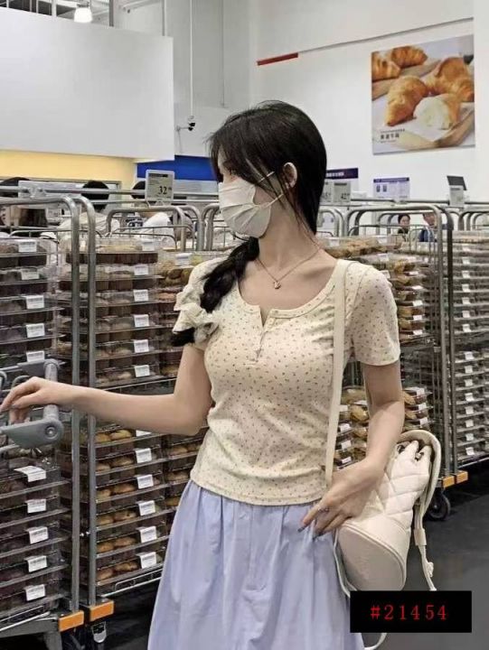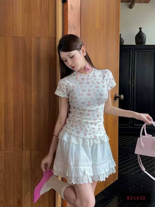 [月亮]:6.8清1262件/分货7.5[月亮]:甜美碎花修身高弹圆领正肩辣妹棉T恤[...