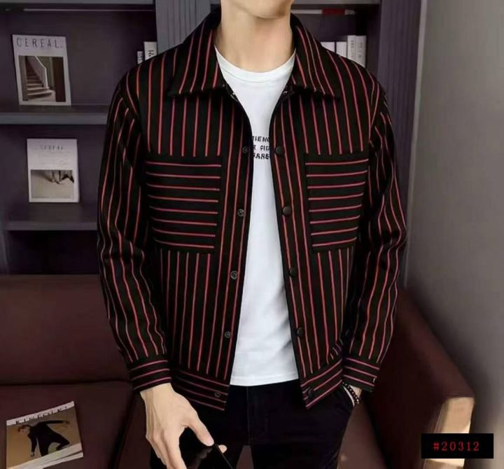 秋冬季短款男士条纹翻领精神小伙时尚潮流加绒夹克外套,独立包装带吊牌,码...