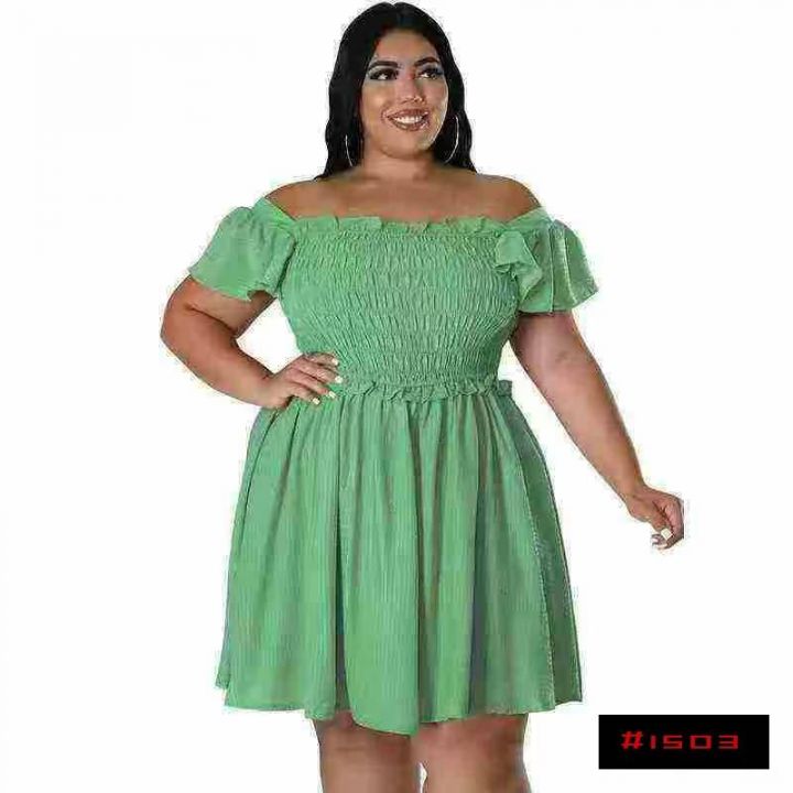 3000件左右,跨境欧美大码夏季女装一字领短袖大摆连衣裙精品华夫格短裙,独...
