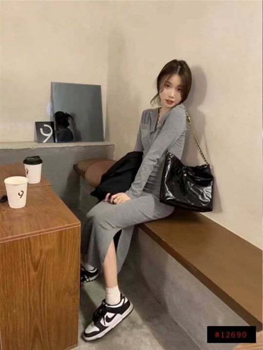 [月亮]:7.9清138件(不分货)[月亮]:辣妹修身包臀开衩连帽卫衣长裙连衣裙...