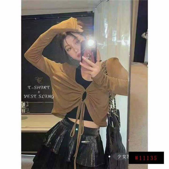 [福]法式设计款纯色高腰V领抽绳短款长袖T恤213件,码数2~5码,单款单色,独...