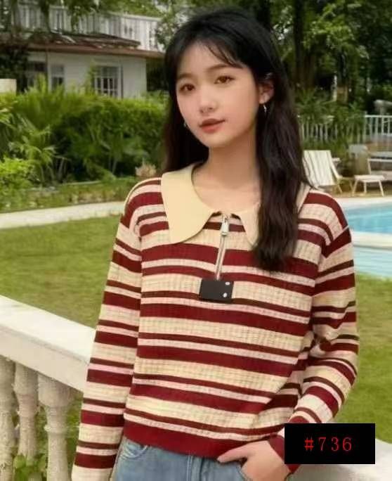 秋冬新款撞色条纹半拉链针织套头毛衣,独立包装,均码面料柔软舒适弹力大,...