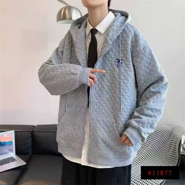 [月亮]:9.8清237件[月亮]:华夫格情侣款连帽拉链卫衣外套[月亮]:123码 独...