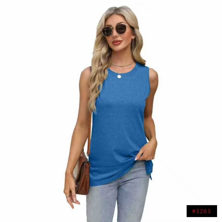 1.9清电商仓回收930件亚马逊爆款跨境冰丝纯色宽松大码V领无袖休闲背心T恤,...