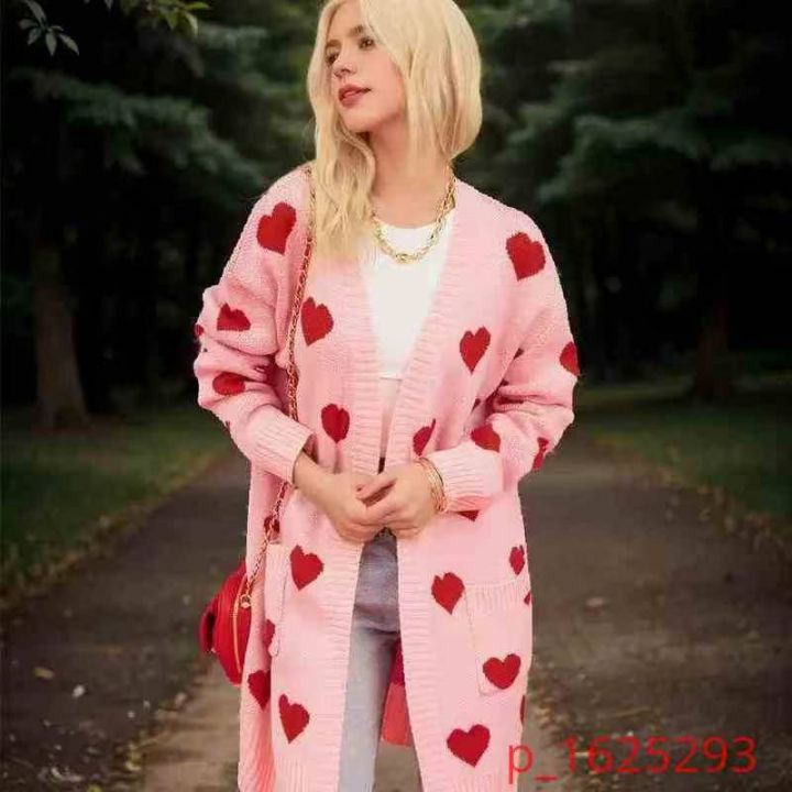 85件左右秋冬新款爱心针织开衫口袋V领中长款毛衣开衫外套,均码!独立包装...