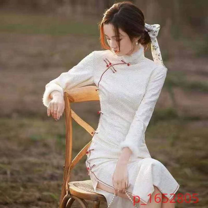 上新全清:7.8一件复古气质素雅加绒加厚旗袍连衣裙,[爱心]30件左右,码数S...