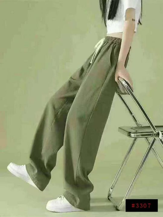 全清7.9美式复古运动裤女2025年新款显瘦阔腿宽松直筒休闲卫裤,大货军色为...