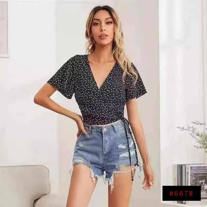 [月亮]:5.5清443件[月亮]:欧美辣妹深V绑带碎花上衣[月亮]:S-XL,独立包...