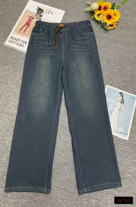 捡漏款,冬季新款宽松高腰松紧腰直筒阔腿加绒牛仔裤,独立包装带吊牌,码数...