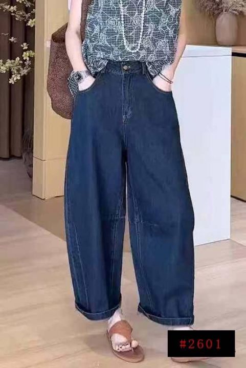 #牛仔裤批发复古水洗棉正腰 高腰弯刀牛仔阔腿宽松显瘦休闲牛仔裤潮流裤子,...