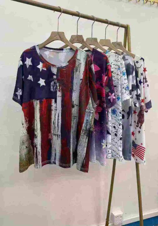 240件宽松休闲印花圆领短袖,面料柔软舒适,高弹力。1XL一4XL,独立包装.全...