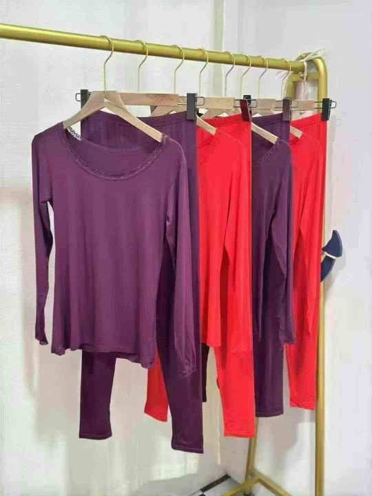莫代尔棉女士秋衣秋裤薄款紧身纯色打底冬季美体修身保暖内衣套装,数量1200...