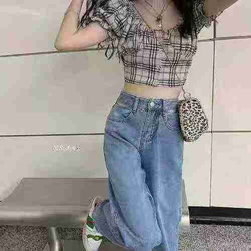 港味腰部镂空弹力阔腿女士牛仔裤,单款单色,独立包装,数量113条,XS-XL码...