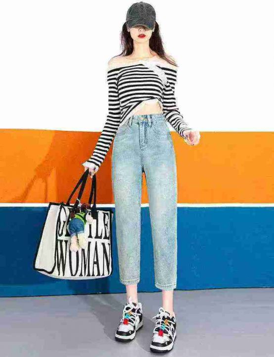 夏季浅色哈伦牛仔裤女春夏新款外穿高腰显瘦老爹裤98条全清11.8元,码数SM,...