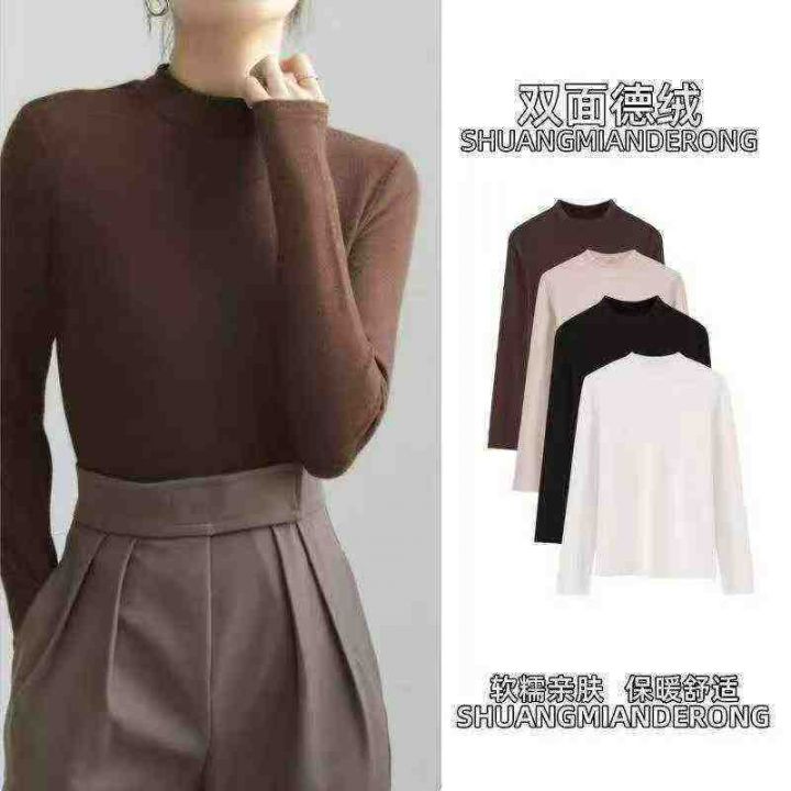 秋冬新款基础款叠穿德绒打底内搭弹力修身显瘦洋气简约长袖上衣,独立包装,...