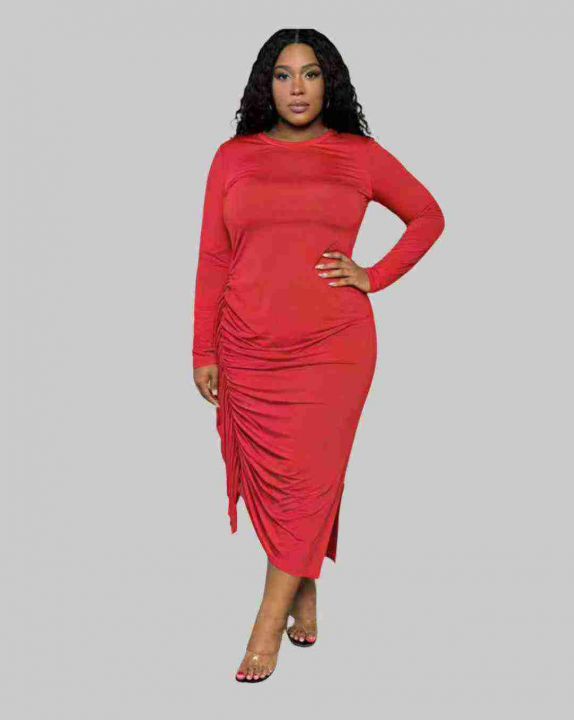 7.8清:欧美风跨境纯色修身显瘦长袖包臀褶皱圆领气质连衣裙 ,数量100条左...