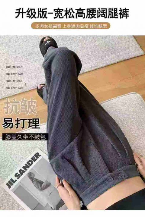☆838款,设计感少女靓妹女装灯芯绒双扣拉链款松紧腰高腰阔腿裤,1005件,S...
