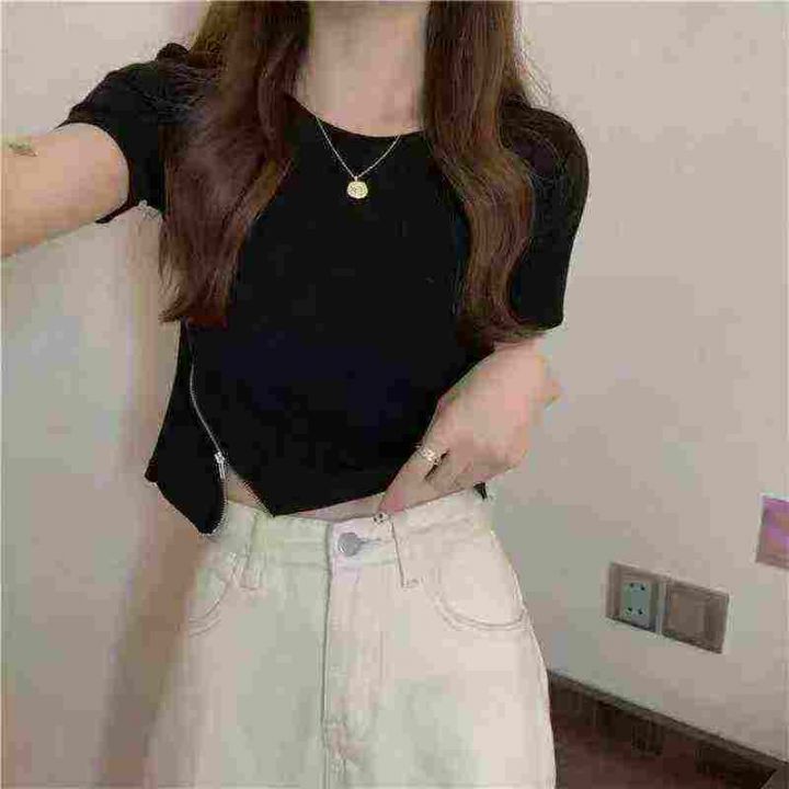 全清3.8元天猫在售款400件左右高品质韩版修身短款拉链设计感开叉上衣,码数...
