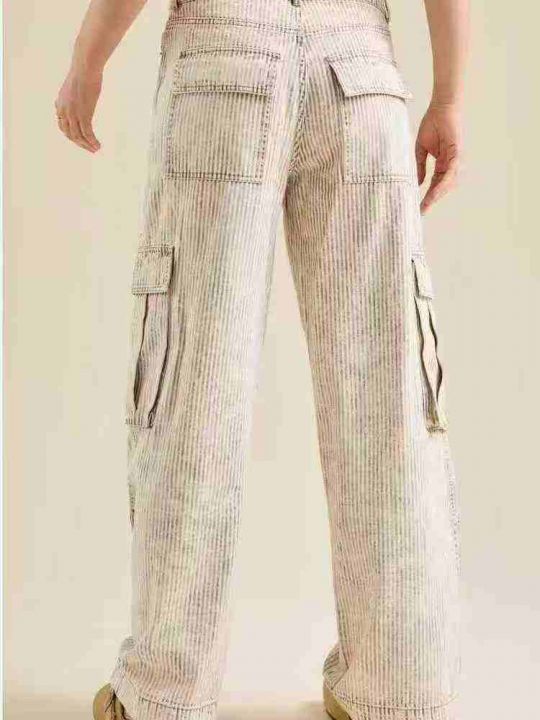 180条左右美单Alt@r\'d State美式复古洗水做旧重工宽松直筒条纹工装裤牛仔...