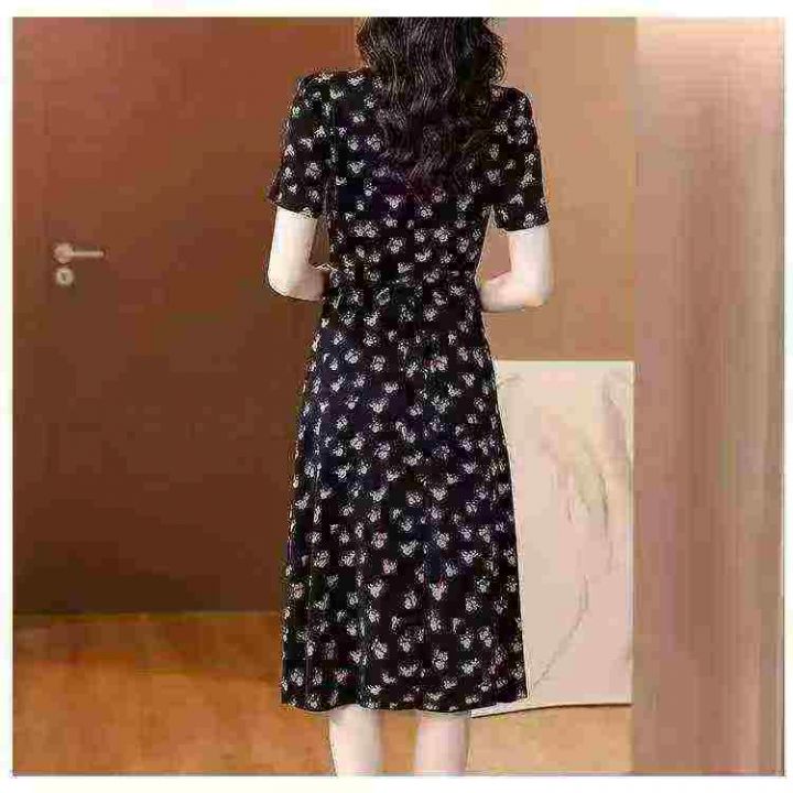 碎花裙女夏季新款女长款修身显瘦方领短袖小黑裙子法式收腰连衣裙260件,独...