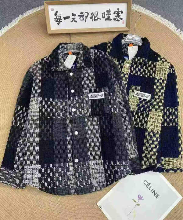 复古撞色编织格子外套271件19.8,宽松版情侣款,品质,翻领设计,字母毛巾...