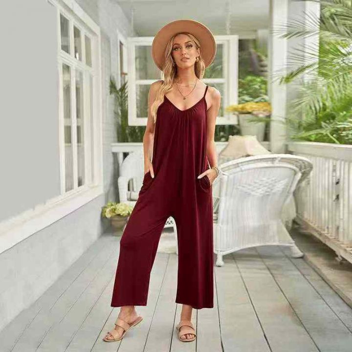 6.9清电商仓回收3560件爆款跨境吊带宽松纯色扎染渐变印花阔腿连体裤女,码...