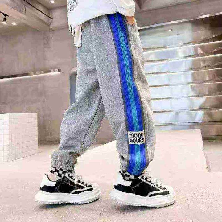 男童裤子春秋潮童炸街童裤中大童拼色大条纹运动裤儿童休闲裤卫裤,独立包装...