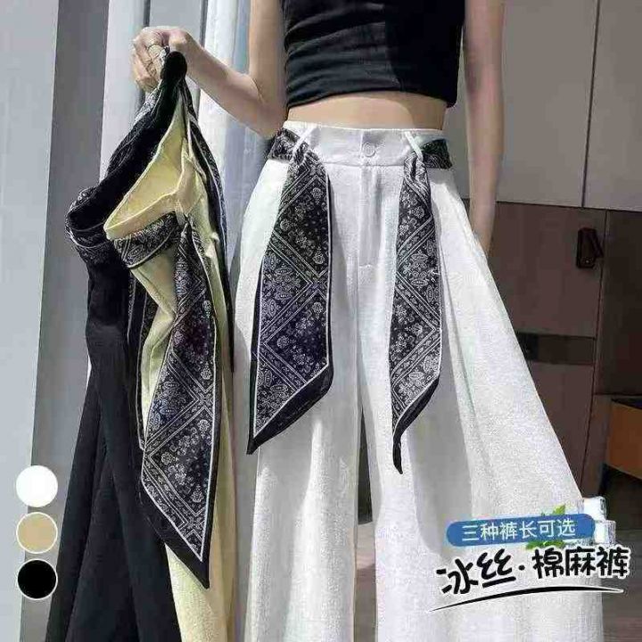 阔腿裤女夏薄款系带高腰显瘦宽松垂感休闲直筒拖地裤,整款2色,白色为主,S...