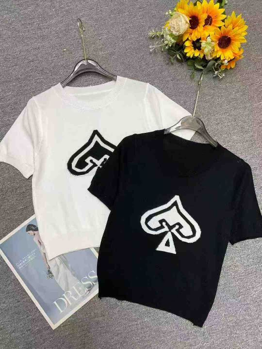 夏季新款圆领桃心提花针织短袖T恤,独立包装,均码面料柔软舒适弹力大,80...