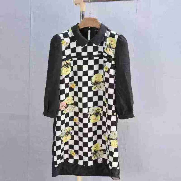 3.5元秒杀[發][發] 新款印花气质修身显廋长袖格子,白色地方轻微染色,独...