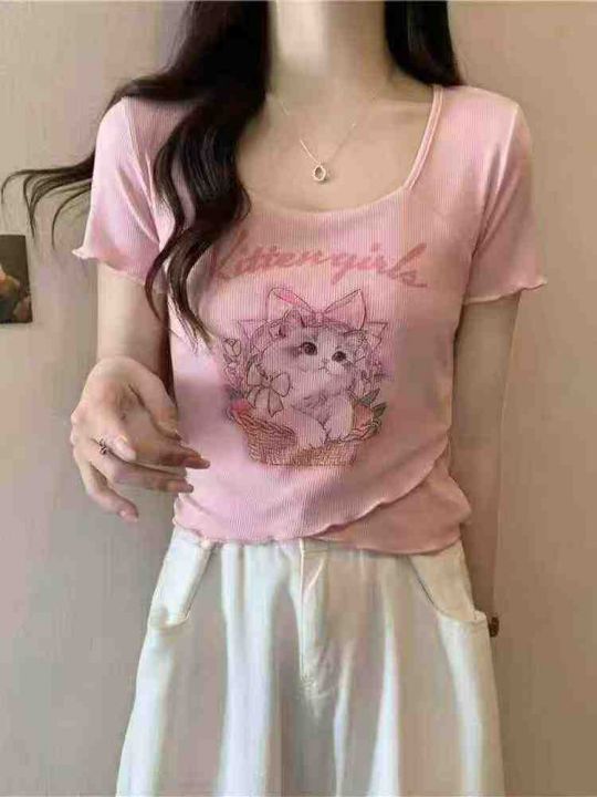[月亮]:6.9清1900件[月亮]:不规则猫咪印花辣妹短袖T恤[月亮]:1-4(高弹...