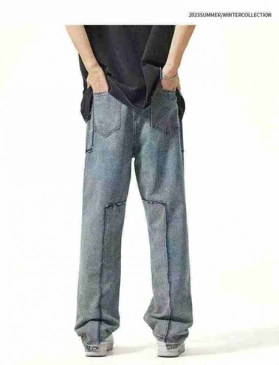 #男士牛仔裤批发 复古水洗男士直筒宽松美式潮牌拼接工艺休闲牛仔长裤,单款...