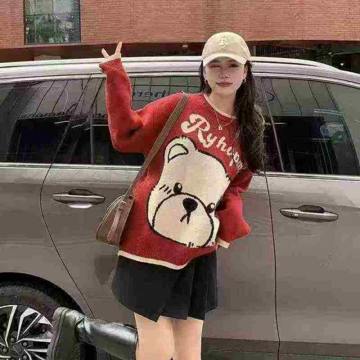上新全清:9.9一件气质小熊提花刺绣宽松百搭针织毛衣,[爱心]55件左右,均...
