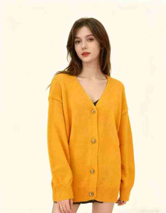 全清13.8,欧洲站流行漂亮橘色v领长袖针织毛衣开衫女秋冬软糯洋...
