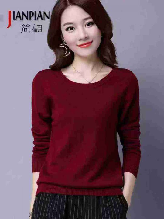 春秋新针织打底衫女宽松冬季内搭圆领百搭针织毛衣,580件,包芯纱面料,柔...