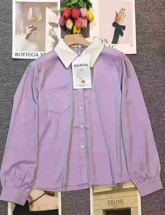 上新全清:10.8一件高级感紫色醋酸缎面通勤宽松长袖上衣,[爱心]70件左右,...